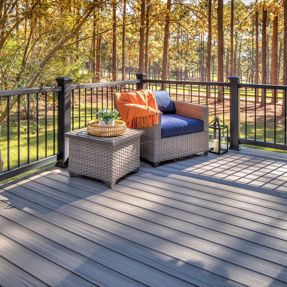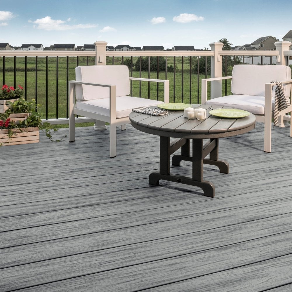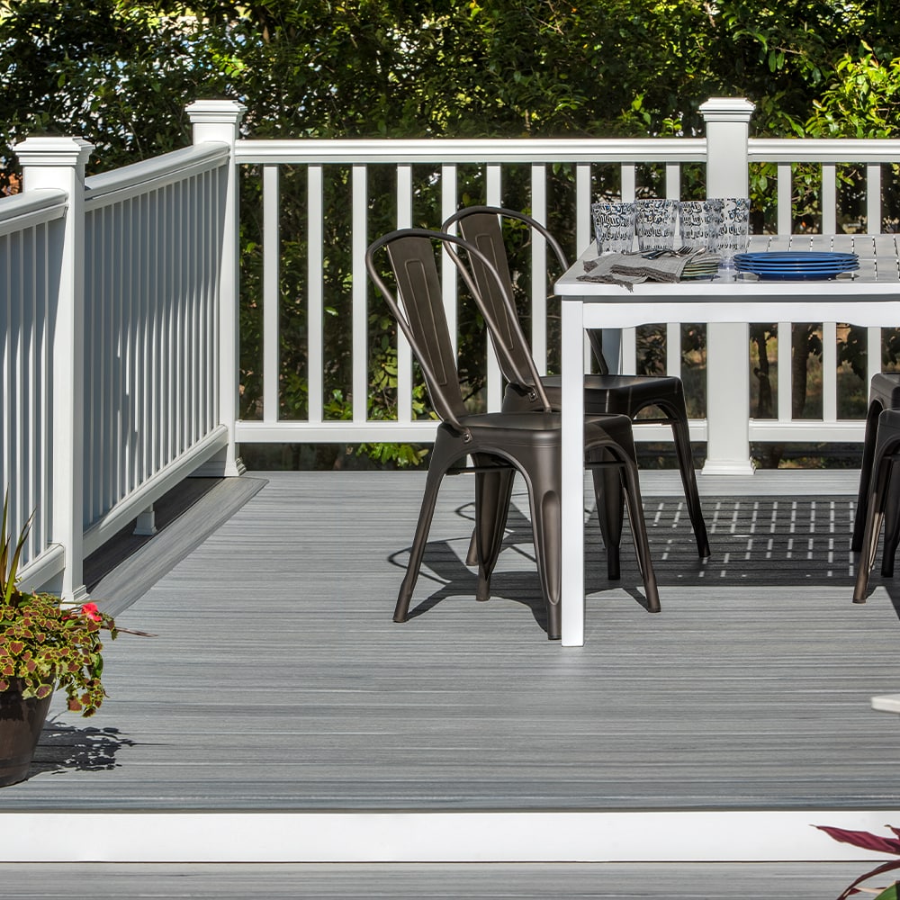 A balanced, mid tone grey with warm sandy highlights that mimic weathered stone. Rocky Harbor adds understated sophistication, perfect for contemporary decks with a natural edge.